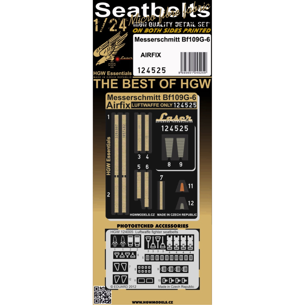 Pásy jsou vyrobené z opravdového textilního mikrovlákna a v kombinaci s přiloženými fotoleptanými přezkami působí velice realisticky a velice je doporučujeme pro stavebnici od firmy Airfix.